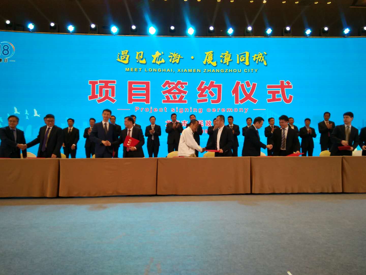 2017年11月19日,龍海市委、市政府舉辦的“遇見龍海·廈漳同城”招商推介會(huì)在廈門國際會(huì)議中心國宴廳舉行,招商推介會(huì)取得豐碩成果。現(xiàn)場簽約項(xiàng)目24個(gè),總投資達(dá)350億元。簽約項(xiàng)目涉及6·18信息平臺(tái)、投資基金、文化旅游、新能源開發(fā)、食品創(chuàng)意觀光、總部經(jīng)濟(jì)等行業(yè)和領(lǐng)域。