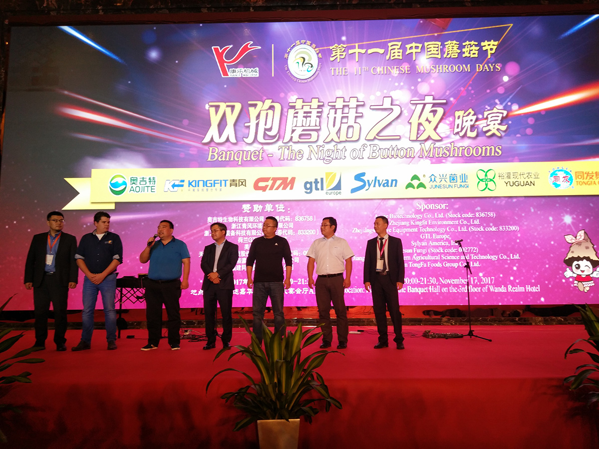 11月17日晚,在會場隆重舉行第十一屆中國蘑菇節“雙孢蘑菇之夜”晚宴,同發集團作為晚宴贊助商之一,同發集團副總裁陳光祥上臺致辭,對各位來賓的到來表示歡迎,同時簡要介紹了同發集團發展雙孢菇產業的情況以及公司的發展方向,強調了中國蘑菇節的召開對行業發展、企業的技術水平提升等方面的重要性。最后陳總誠摯邀請與會嘉賓到同發進行參觀指導。