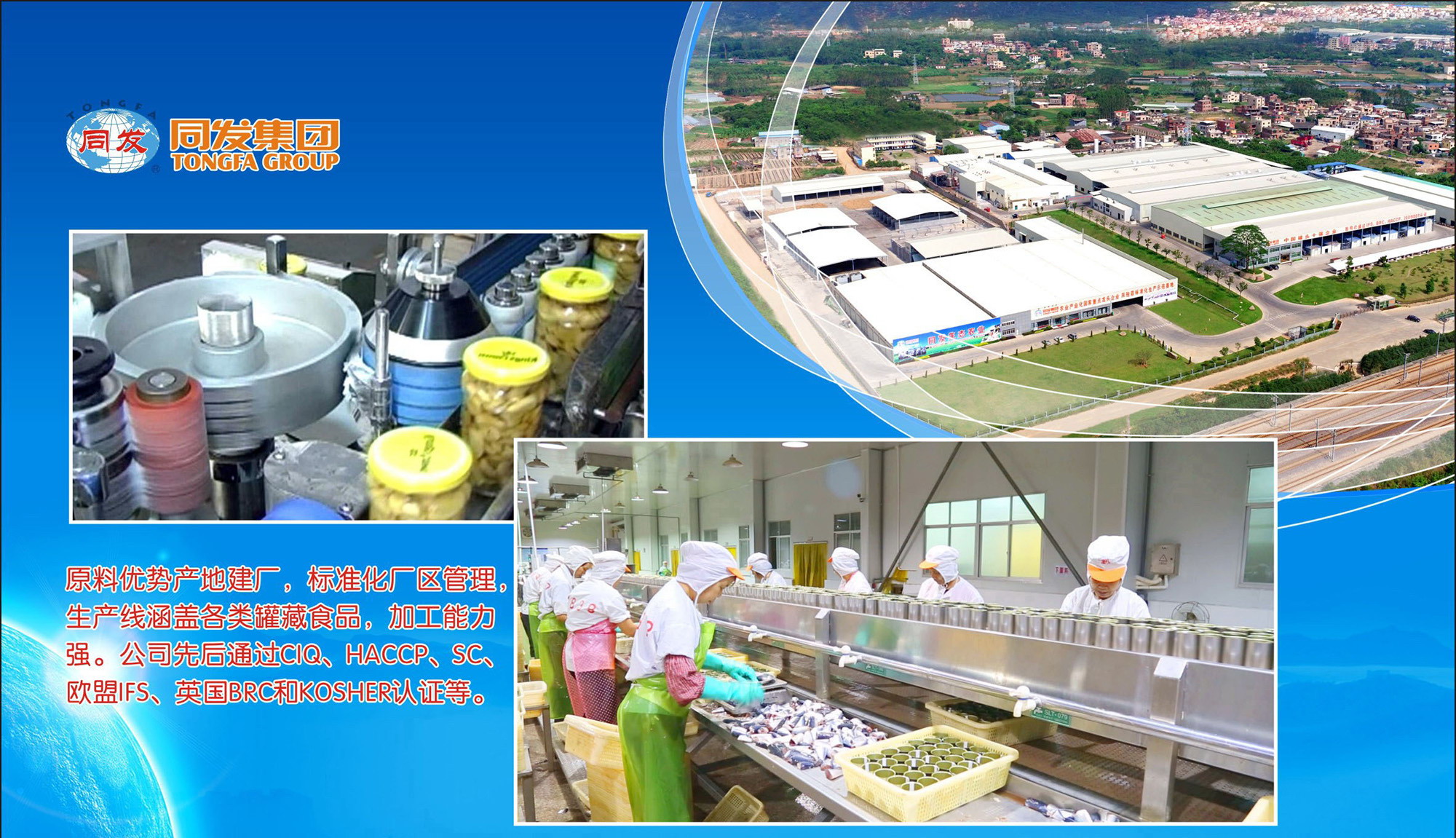 漳州市同發食品工業有限公司坐落于漳州臺商投資區角美鎮洪岱工業區,成立于2002年12月,注冊資本8000萬元,占地面積 131 畝,是一家專門從事農產品精深加工、農產品種植及研發的企業。公司主營業務為食用菌種植、果蔬罐頭(包括食用菌罐頭)、水產品罐頭及各種品種,規格達100多種,品類齊全,公司銷售網絡遍布全球五大洲100多個國家和地區。